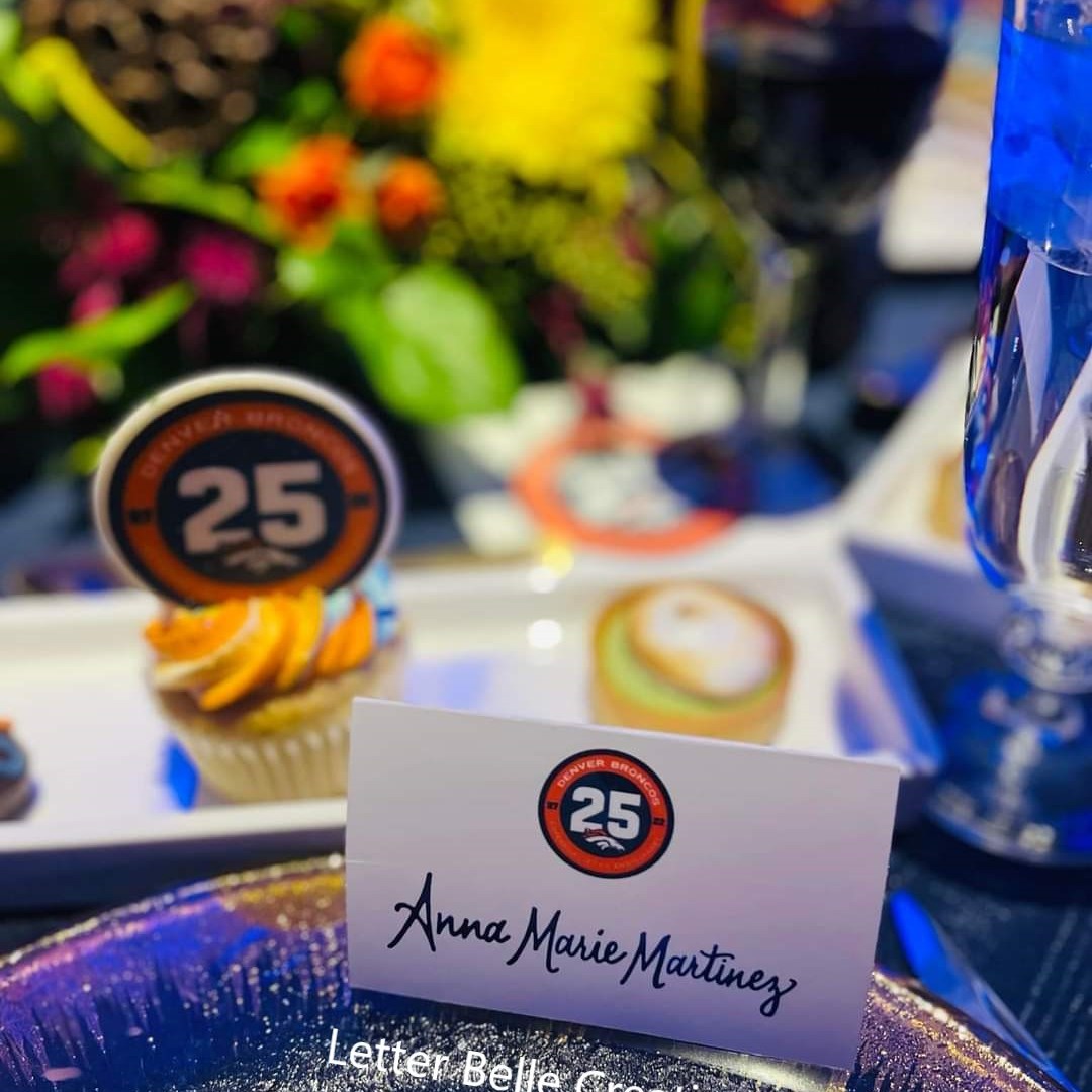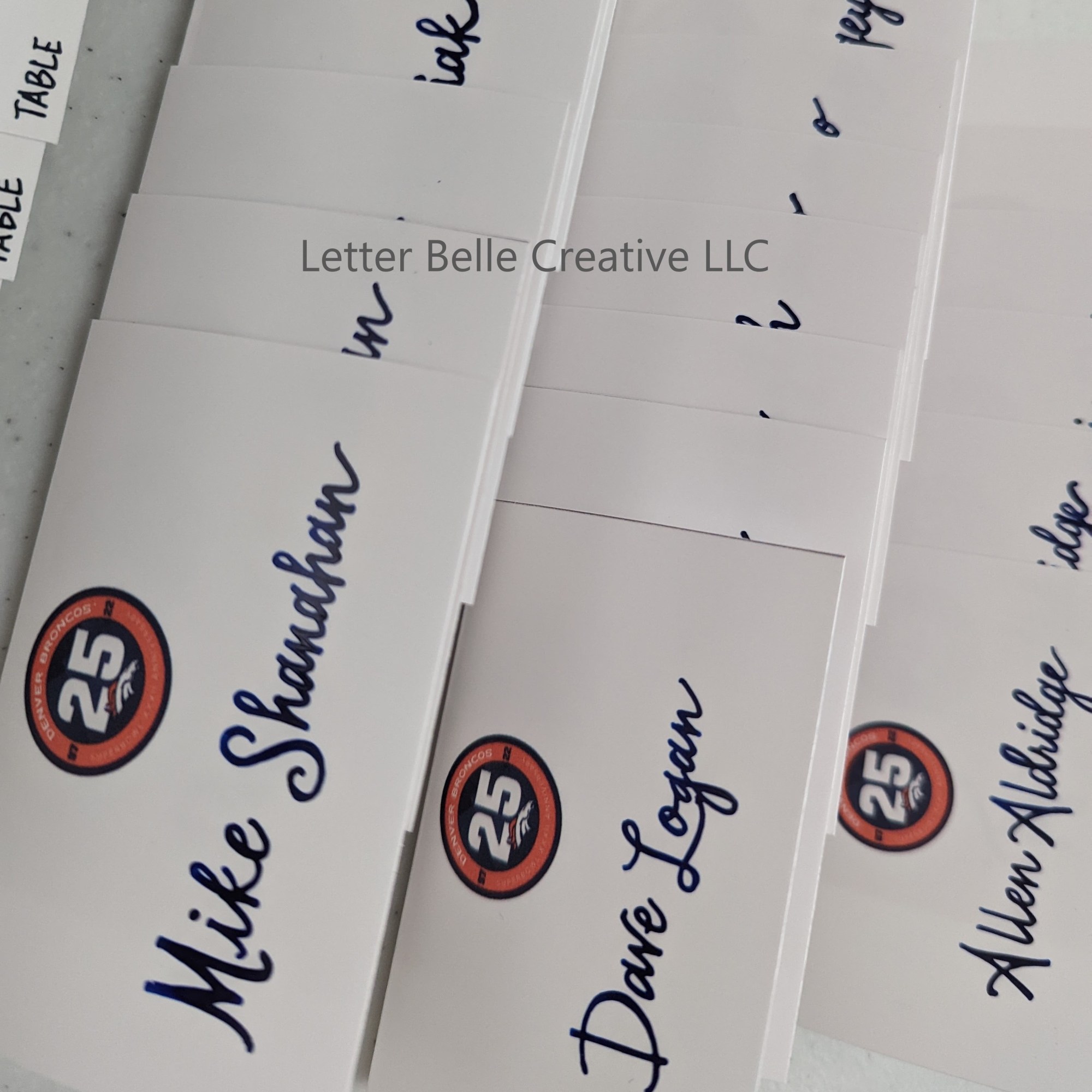 Calligraphy done by hand with a pointed pen or a glass pen. Adds *that* personal touch to your event.